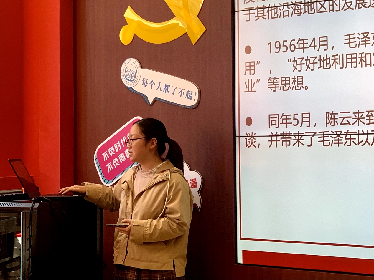 本次团日活动特别邀请到了学院“国政青年说”宣讲团成员徐颖。她为团员们讲述了党的第一代中央领导集体和第二代中央领导集体的重要成员陈云同志的生平故事。