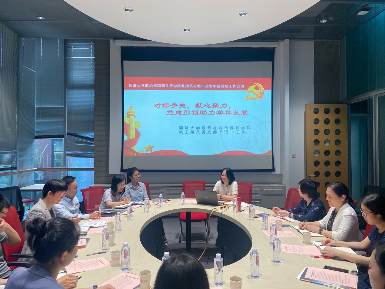 2021年5月11日下午,为学习同济大学兄弟院校党建工作先进经验,推进学院党建工作进一步发展,星空足球党委书记徐红率领学院全体基层党支部书记和部分支委赴建筑与城市规划学院开展党建调研。城规学院党委书记刘颂、党委副书记唐育虹、教工第八党支部书记王敏等对我院师生表示热烈欢迎,双方在建筑与城市规划学院C1会议室召开党建经验交流座谈会,就学院党建工作情况、全国党建标杆党支部的先进经验、“三全育人”机制等主题开展了广泛的交流和讨论。学院党委书记徐红、党委副书记宋波、教工第一党支部书记钟振明、教工第二党支部书记赵萍丽、教工第三党支部书记郑春荣、本科生党支部书记岑昱玮、院党委组织员宫振蒙及四位研究生党支部书记等十余人参加了本次交流活动。此次调研共包括三个部分:听取城规学院全国标杆党支部经验介绍、双方交流座谈和参观城规学院党员之家和双带头人工作室。