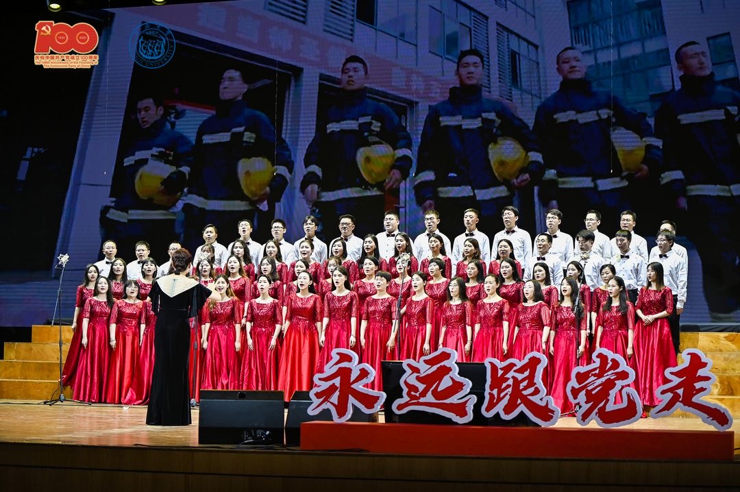 老师同学们深情投入,献礼建党100周年。“与国修远志,为政扬新舟”,生生不息、无惧风雨;此次比赛,星空足球组织了60位优秀师生,组建成国政师生合唱团,成员包括学院领导、教学科研第一线优秀教师、博士生、硕士生和本科生等。他们带来的曲目是《不忘初心》,“不忘初心”不仅仅是在赞美歌颂百年以来,中国共产党“不忘初心、牢记使命”的优秀品质,也是国政人对自己的踏实承担时代大任的美好期许;学院希望通过此次合唱比赛,用歌声凝聚师生奋进向前力量,感悟中国共产党崇高品质,向建党百年献礼,激发追梦热情。