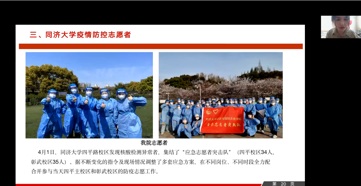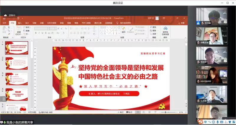 其次,支部进行了集中的政治理论学习,马艳红、于利花两位同志为我们做出了深刻的主题党日活动汇报。首先,马艳红同志以“同济大学疫情防控”为题,向支部同志阐述党中央对于此次上海地区疫情的总体指导方针、当前上海疫情防控的总体形势、同济大学疫情防控调度、同济大学疫情防控志愿情况、全国各地驰援同济等方面内容。同时,她观察到我院教职工在校园封闭管控期间的坚守与付出,进一步表达对志愿者与校友的感激之情、坚定同志们对战胜疫情的信心与决心。于利花同志以“坚持党的全面领导是坚持和发展中国特色社会主义的必由之路”为题开展党支部的“扬时代新声”学习活动。于同志从“中国答卷最重要的成功密码、在经济发展中更好发挥党的领导核心作用、不断改善人民生活根本在于始终坚持党的全面领导、坚持党的全面领导,开启全面建设社会主义现代化国家新征程”四个主要方面开展学习分享,并通过贵州省与湖北省神农架地区的脱贫案例为大家具体阐述党在引领国家发展过程中的核心关键作用。最后,支部同志也踊跃的对马艳红与于利花同志的汇报内容展开讨论,积极分享自己在疫情期间的所思所感,表达自己对防疫工作的坚定信心。