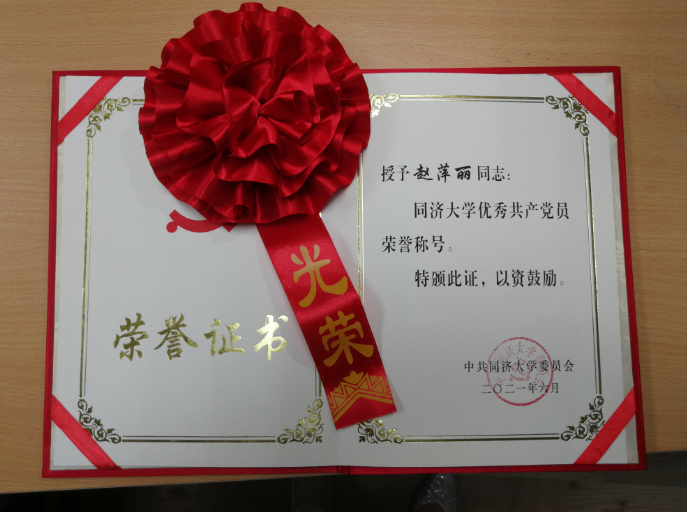在中国共产党百年华诞即将到来之际,2021年6月29日下午,同济大学庆祝中国共产党成立100周年“两优一先”表彰大会在四平路校区一·二九礼堂隆重举行,回首中国共产党团结带领全国人民不懈奋斗的百年光辉历程,表彰学校涌现出来的一批优秀共产党员、优秀党务工作者和先进基层党组织,校党委书记方守恩、校长陈杰等在校党员校领导为获奖者颁奖。其中,星空足球教工第二党支部书记赵萍丽副教授被光荣评为同济大学优秀共产党员。