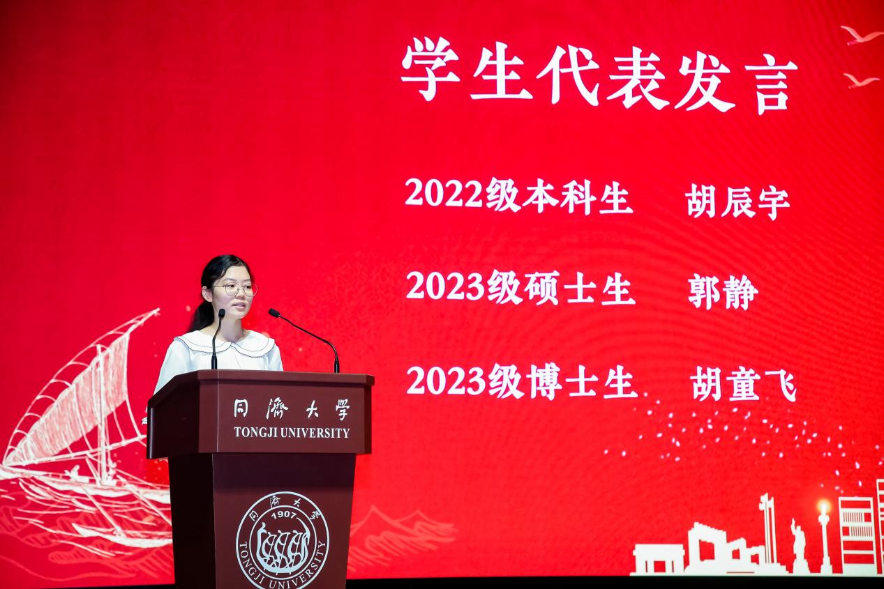 吴笛老师首先回顾了她20年前初到同济的求学经历,表达了对同济培育之恩的感谢。接着,吴笛老师欢迎每一位新生加入国政学院的大家庭,希望在座的每一位新生,都能在同济校园中提升个人的学识、拓宽眼界、成为未来政治与国际事务领域的杰出代表。吴老师最后指出,同学们要保持求学的好奇心,成为有品德、有担当的人,永远不要畏惧失败,同时祝愿同学在新学年里成为更好的自己。