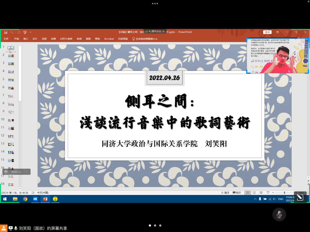 作为国政学院2019级本科生班主任,刘笑阳老师配合学院完成相关学生工作,定期召集班委优化班级疫情通报方案,组织具有趣味性的班级讲座活动以及对有需要的学生进行线上一对一辅导;作为硕士研究生导师,召开组会关心学生的学习情况和心理状态,鼓励学生们“随遇而安”以及“培养在非常状态下保持正常状态的卓越精神”;作为任课教师,坚持充分备课、灵活讲授,组织包括模拟俄乌谈判、模拟联合国安理会等教学形式,致力于以“快乐学习”提升学生们的自我调整和建设能力。