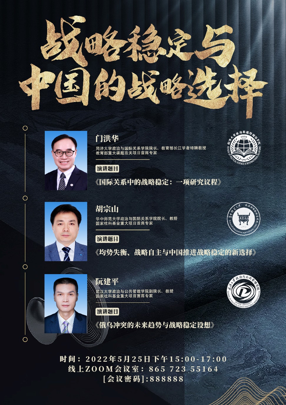 On the afternoon of May 25, 2022, a seminar on “Strategic Stability and China's Strategic Choices” was successfully held via Zoom jointly by the School of Political Science & International Relations (SPSIR) / the Institute for China & World Studies of Tongji University, the School of Politics and International Relations of Central China Normal University, and the School of Political Science and Public Administration of Wuhan University. Prof. Men Honghua from Tongji University, Prof. Hu Zongshan from Central China Normal University, and Prof. Ruan Jianping from Wuhan University had in-depth academic discussions and theoretical analysis on the issue of strategic stability. The seminar was moderated by Prof. Zhong Zhenming, Associate Dean of SPSIR. According to incomplete statistics, the seminar was attended by more than 300 students and teachers from 35 universities across China, including Tongji University, Central China Normal University, Wuhan University, Shandong University, Jilin University, Fudan University, University of Chinese Academy of Social Sciences, Beijing Foreign Studies University, and China Foreign Affairs University.