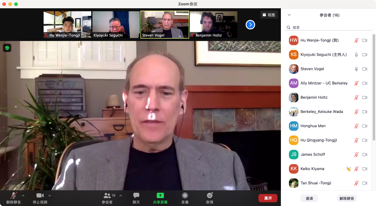After two hours of splendid presentations and discussions, students from the three universities said that the Global Order Formation Project is becoming an important platform for the younger generation to participate in global governance. Taking the ESG issue of UC Berkeley as an opportunity, Tongji University and the University of Tokyo will also conduct research on relevant issues. All participants looked forward to the next meeting.