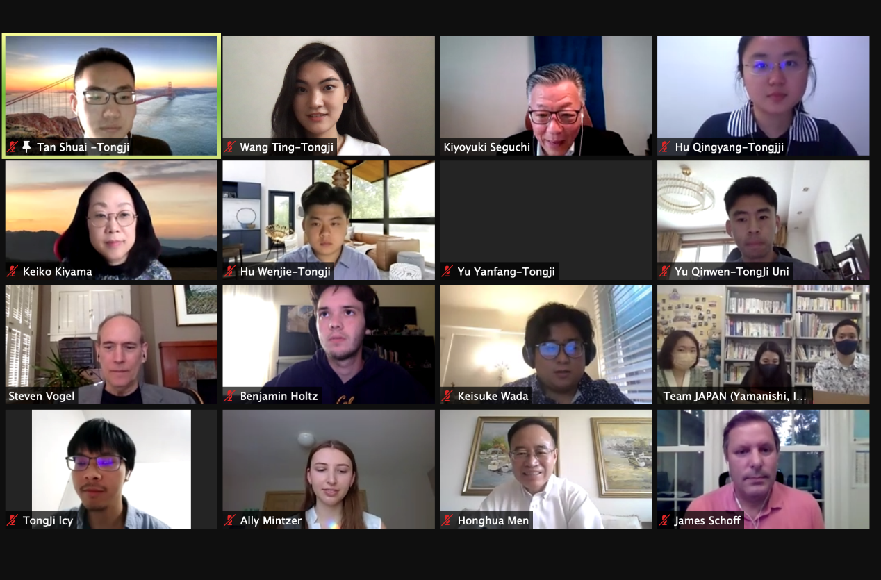 Organized by political science elites from China, Japan, the United States, Germany, France and other countries, the fifth meeting of the Steering Committee of Global Order Formation Project was successfully held via ZOOM on May 5, 2021. Professor Men Honghua, President of the Institute for China & World Studies of Tongji University, Mr. Kiyoyuki Seguchi, Research Director of the Canon Institute for Global Studies (CIGS), Ms. Keiko Kiyama, Mr. Steven Vogel, a Professor of Political Science at the University of California, Berkeley, Mr. James Schoff, a senior fellow in the Carnegie Asia Program at the Carnegie Endowment for International Peace, together with other members of the Project Steering Committee attended this meeting that was moderated by Mr. Kiyoyuki Seguchi, an expert on Japanese and Chinese economic issues. Three master candidates from UC Berkeley, three master candidates from the University of Tokyo, and three doctoral candidates, three master candidates and one undergraduate from Tongji University joined the meeting and delivered keynote speeches.