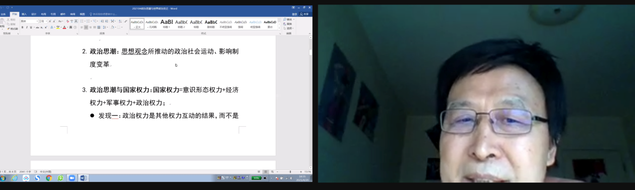 The 89th lecture of “Tongji Advanced Lectures for Graduate Students” was successfully held by the Institute for China & World Studies and the School of Political Science & International Relations, Tongji University on the evening of April 20, 2021 via Zoom. Professor Yang Guangbin from the School of International Studies, Renmin University of China was specially invited to deliver a keynote speech themed “Historical Political Science and World Politics Studies”. Professor Men Honghua, President of the Institute for China & World Studies and Dean of the School of Political Science & International Relations, Tongji University, moderated the lecture. Professor Song Wei, Director of the Department of International Politics, the School of International Studies, Renmin University of China, attended the lecture as a guest. Nearly 300 teachers and students from inside and outside Tongji University watched the academic lecture online.