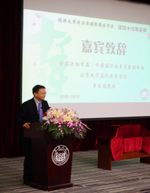 Then, Prof. Jia Qingguo expressed his heartfelt congratulations to the 10th anniversary, and read the congratulatory letter sent by the School of International Relations of Peking University, wishing our School a better future.