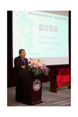 Then, Prof. Bao Xinjian expressed his warm congratulations on our 10th anniversary on behalf of the Chinese Association of Political Science. Prof. Bao fully affirmed our school-running characteristics, and said that he was impressed that we have clear guidelines for management, have distinctive school-running characteristics, have a young faculty team, and have a strong leadership team. He wished us to make more achievements on the ten-year solid foundation!