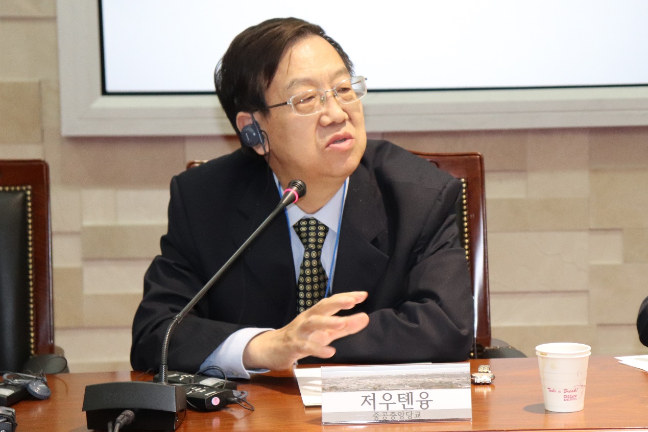 Then, the panel sessions kicked off. Ambassador Shin moderated the first session themed “Situation in Northeast Asia and Trend of the Korean Peninsula”. The four panelists included Cho Seong-ryoul, a professor at INSS, Wang Cungang, a professor at SPSIR, Chun Sung-heung, a professor at Sogang University, and Xia Liping, a professor at SPSIR.