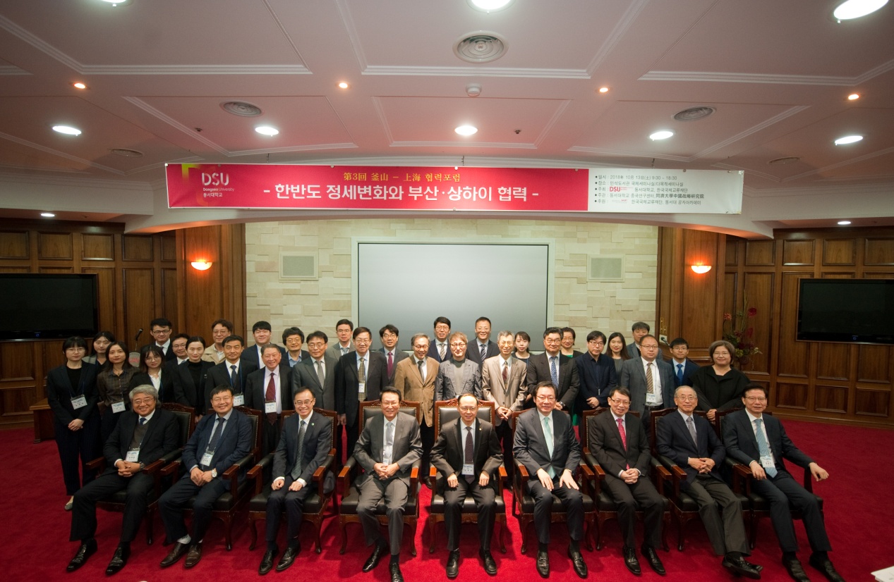 Co-hosted by the Institute for China & World Studies of Tongji University and the Center for Chinese Studies of Dongseo University (DSU), the 3rd Shanghai-Busan Cooperation Forum was successfully held in Busan, South Korea on October 12-14, 2018. The forum invited 19 Chinese representatives from the School of Political Science & International Relations (SPSIR), the School of Foreign Languages and the School of Marxism of Tongji University, Fudan University, Jilin University, Shanghai Jiao Tong University (SJTU), Shanghai Normal University (SHNU), and the Party School of the CPC Central Committee, etc. as well as 20 South Korean representatives from DSU, Yonsei University, Ajou University, Sogang University, Pukyong National University, Yeungnam University, Dong-A University, Sejong Institute, Korea National Diplomatic Academy, Institute for National Security Strategy (INSS), and Busan Municipal Government, etc. Feng Shenhong, Deputy Secretary of the Party Committee of Tongji University, attended the forum.