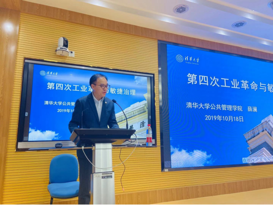On October 18, 2019, the Tongji Serial Lectures on Social Sciences No.18, hosted by the Institute for China & World Studies and the School of Political Science & International Relations (SPSIR) of Tongji University, was successfully held in Conference Hall 518, Huiwen Building, Tongji University. Dr. Xue Lan, a senior professor of liberal arts (1st batch) at Tsinghua University, a Changjiang Scholar of Public Administration in China, and Dean of Schwarzman College at Tsinghua University, was specially invited to give a keynote speech on the topic of 'The Fourth Industrial Revolution and Agile Governance' for teachers and students of Tongji.
